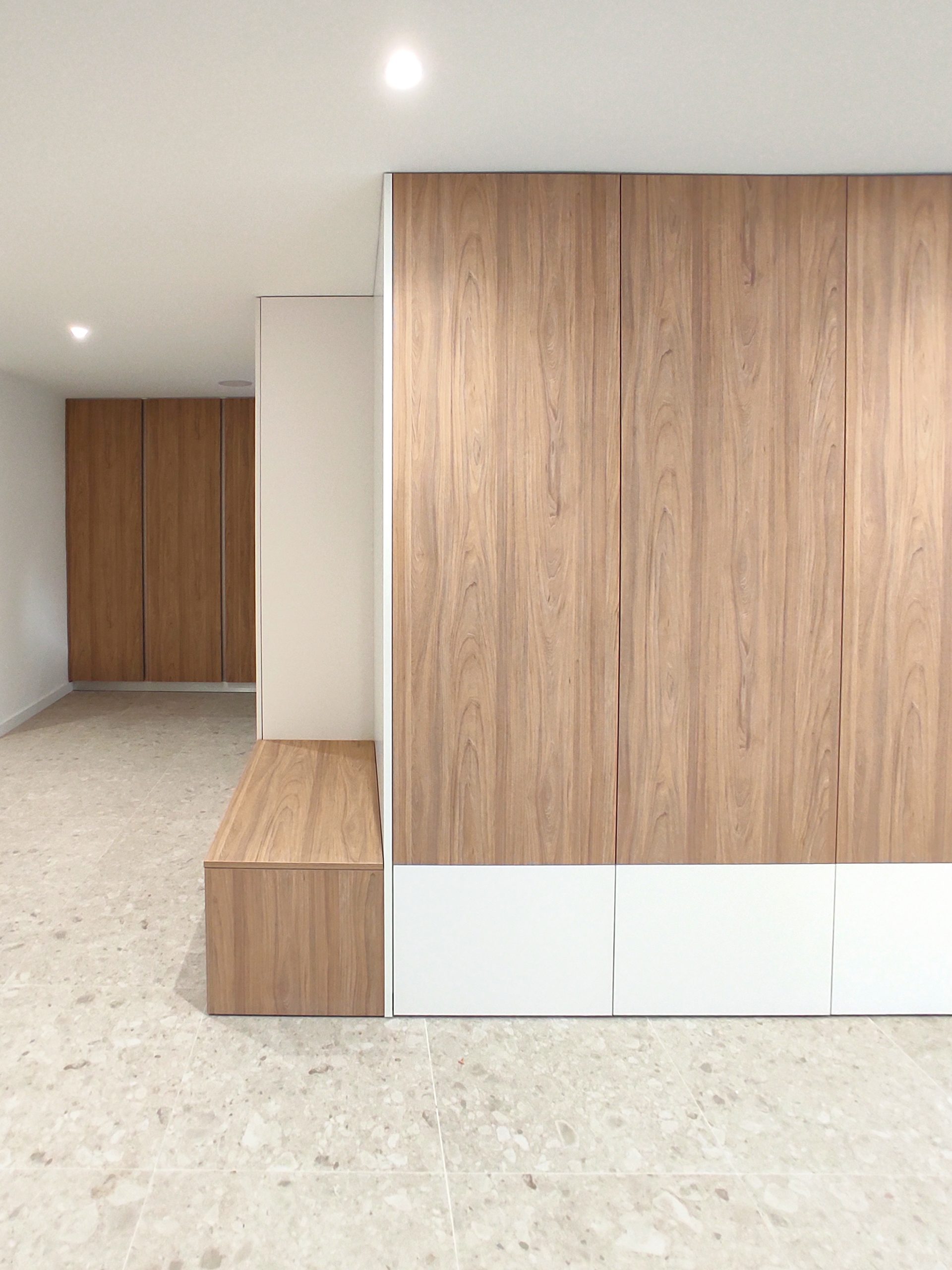 Una peça central d'emmagatzematge, esdevé un element fonamental en la nova distribució de l'espai, ja que ajuda a estructurar el gran espai diàfan que uneix la sala d'estar, el menjador i la cuina.